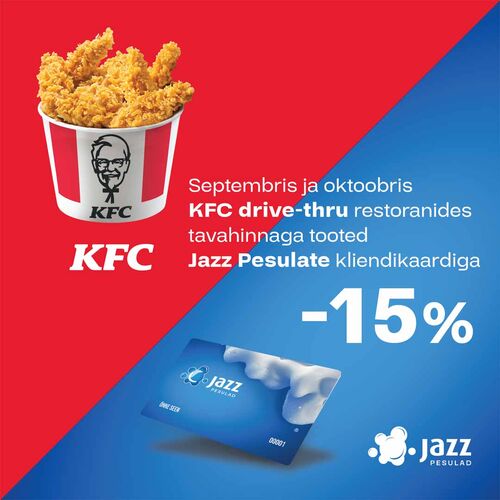 Septembris ja oktoobris KFC drive-thru restoranides tavahinnaga tooted Jazz Pesulate kliendikaardi esitamisel 15 % soodsam.